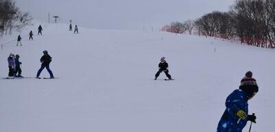 声問小 貸し切り状態のスキー場。滑る場所によって、傾斜が違うので斜面に合わせて滑ります。