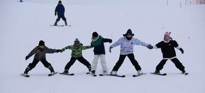 5人で仲良く滑り降りてきた4年生。心からスキーを楽しんでいました。