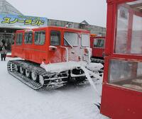 続いて、遊覧雪上車に乗って、氷のはった大沼へ。