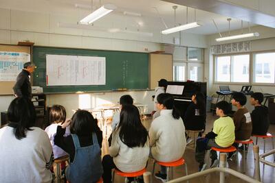 今日は1日、全校で豊富スキー場に行く予定の日でしたが、豊富スキー場がしばらくお休みとなってしまったため、ふれあい公園の「スノーランド」で体を使って冬を楽しみ授業に変更しました。