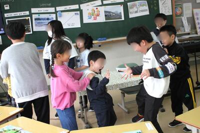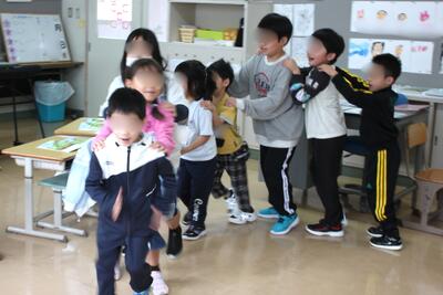 その他にも、じゃんけん列車をしたり、3年生でお勉強する手遊びを教えてもらったり。