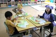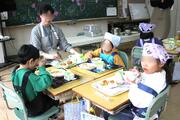 給食は、この日からグループになって食べています。