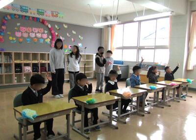 大きな歌声で1年生をお迎えしてくれた3・4年生のお兄さん、お姉さん。