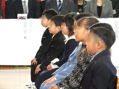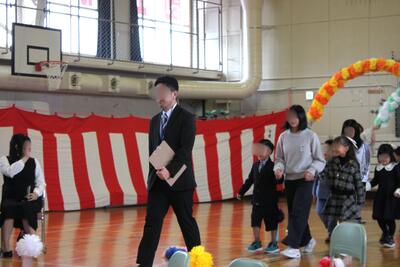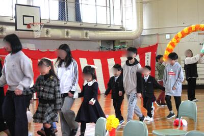 保護者の皆さんと、たくさんの地域の皆さんに見守られ、どうどうと胸を張って入場した6人の1年生。